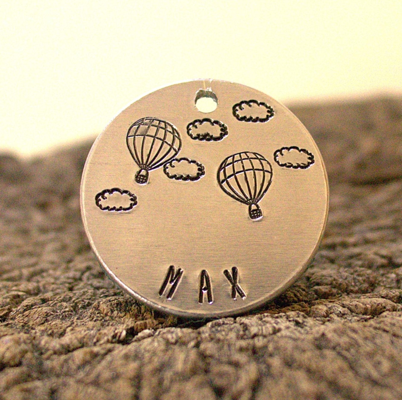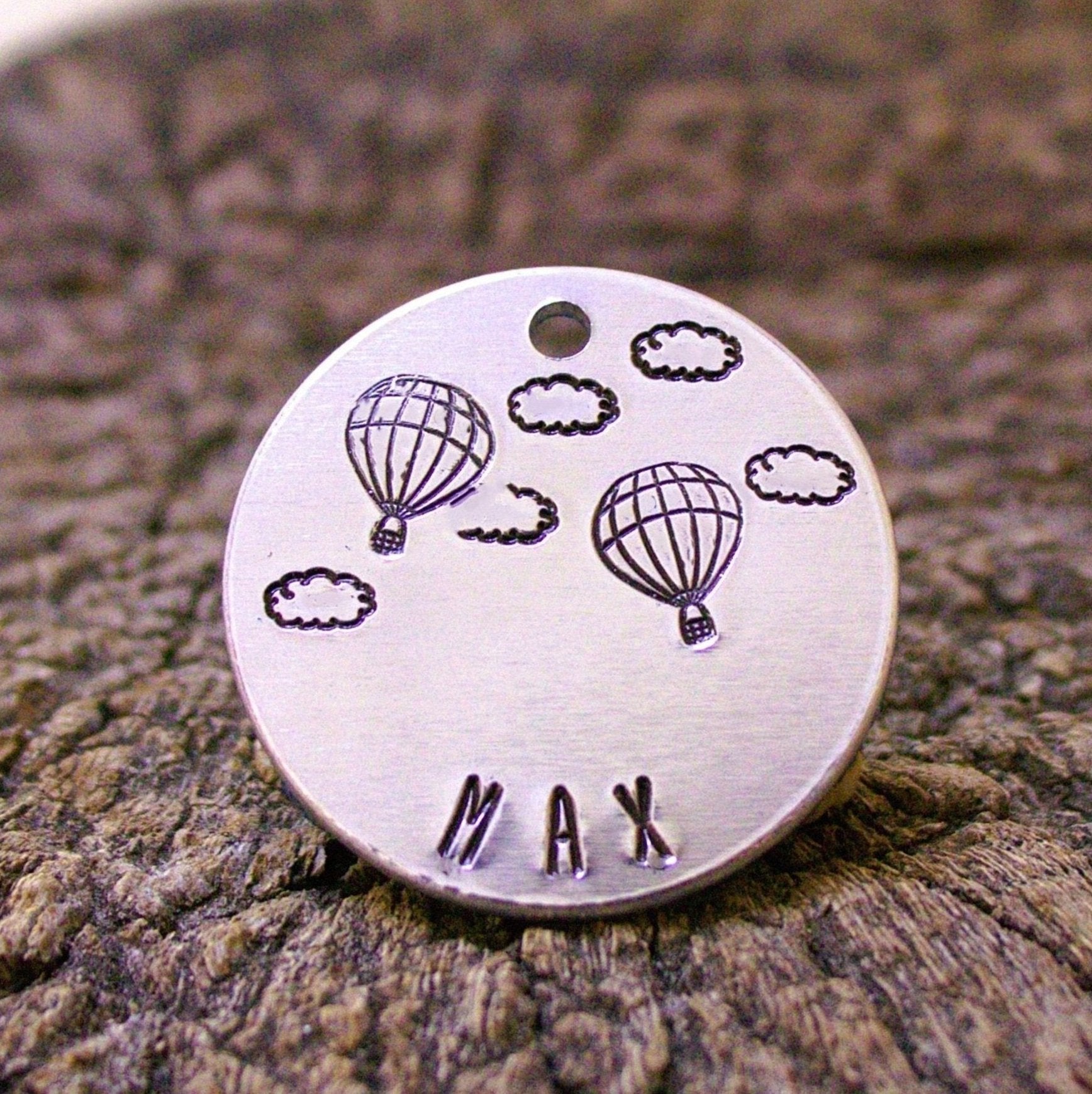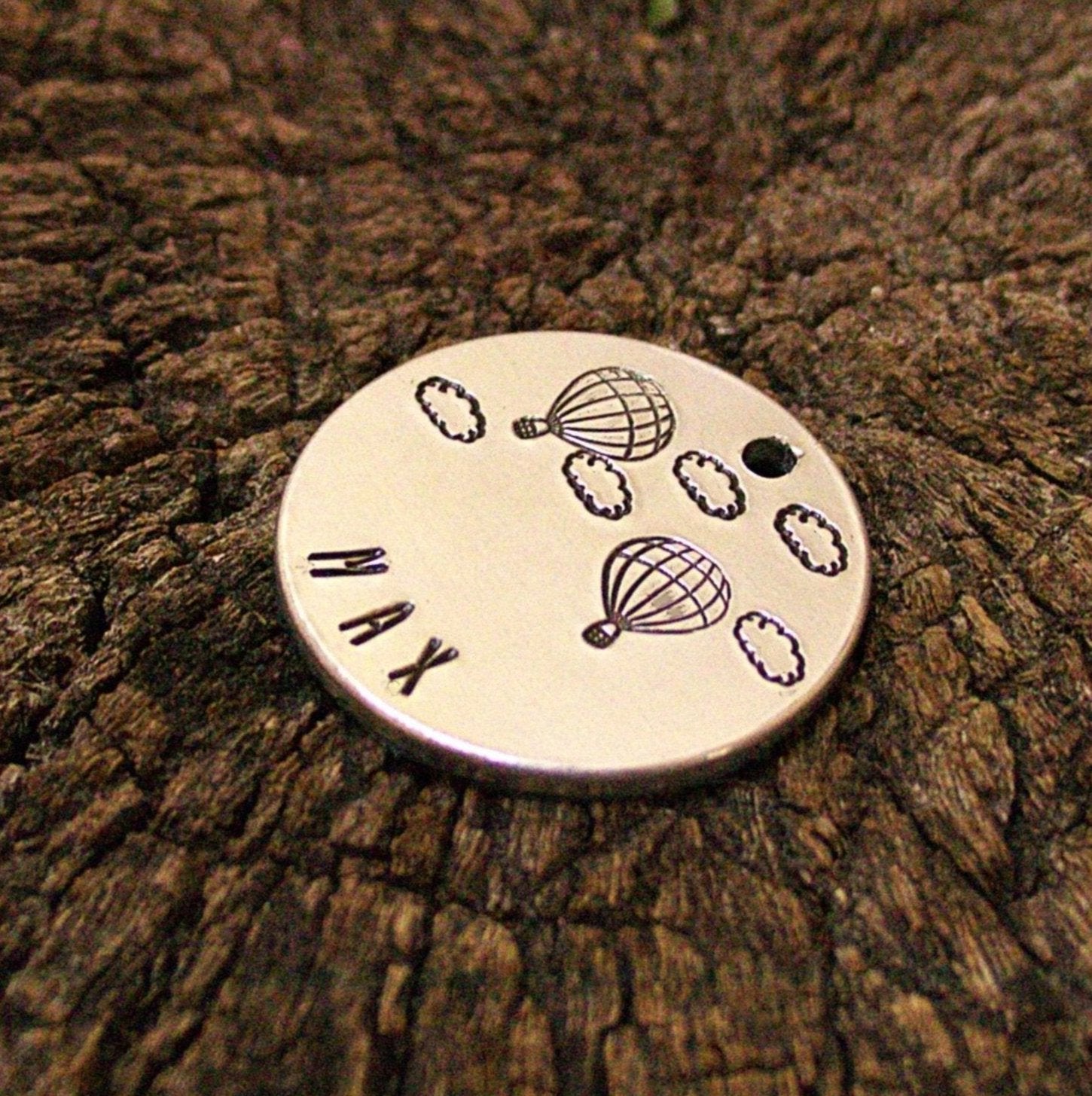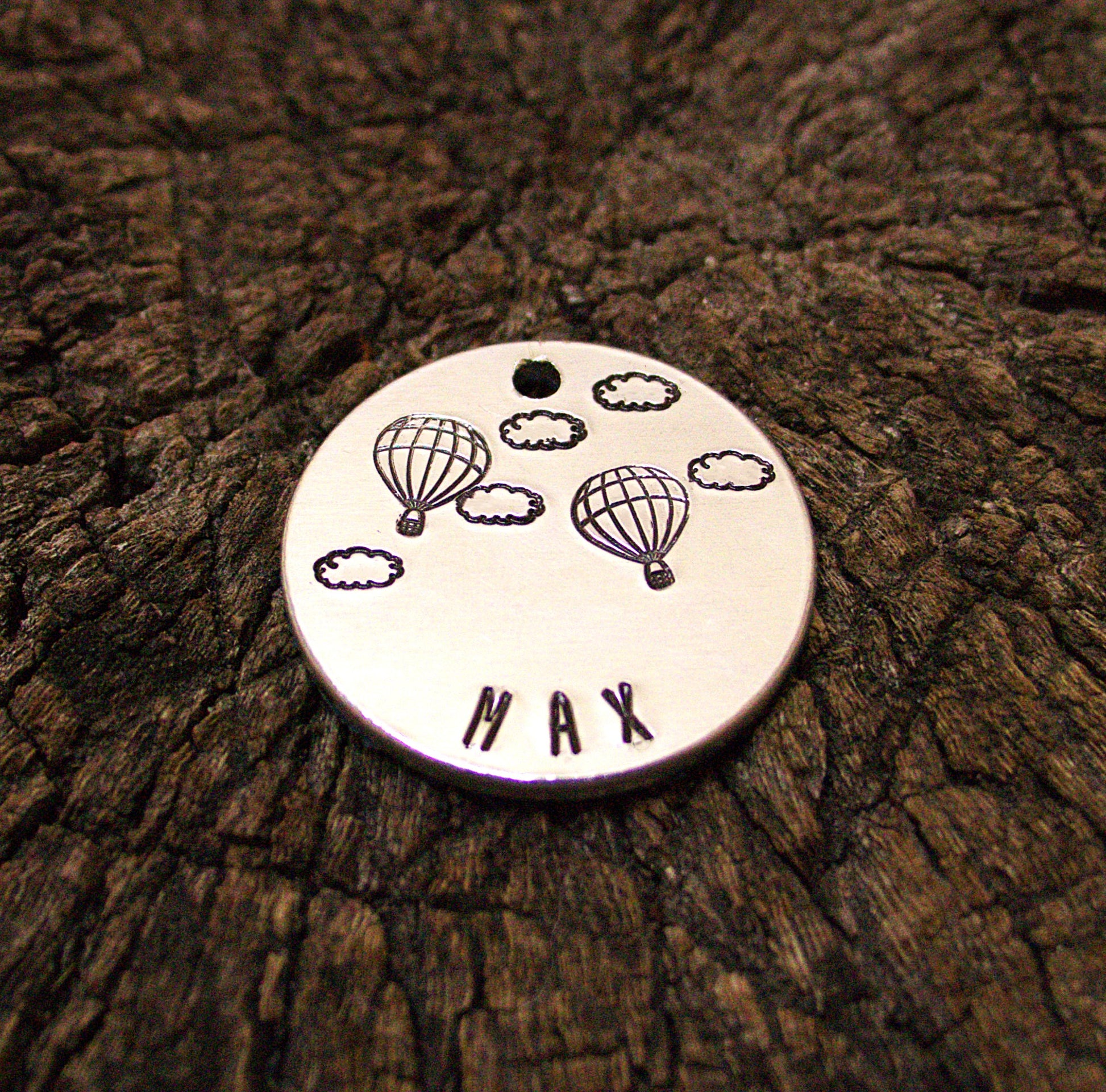 Give your special furbaby a custom ID tag for safety and easy identification. Hand-stamped with care in the South Africa. Each tag is manually hand-stamped with your pet's name adding cute designs of air balloons and clouds, making every piece unique and adorable.