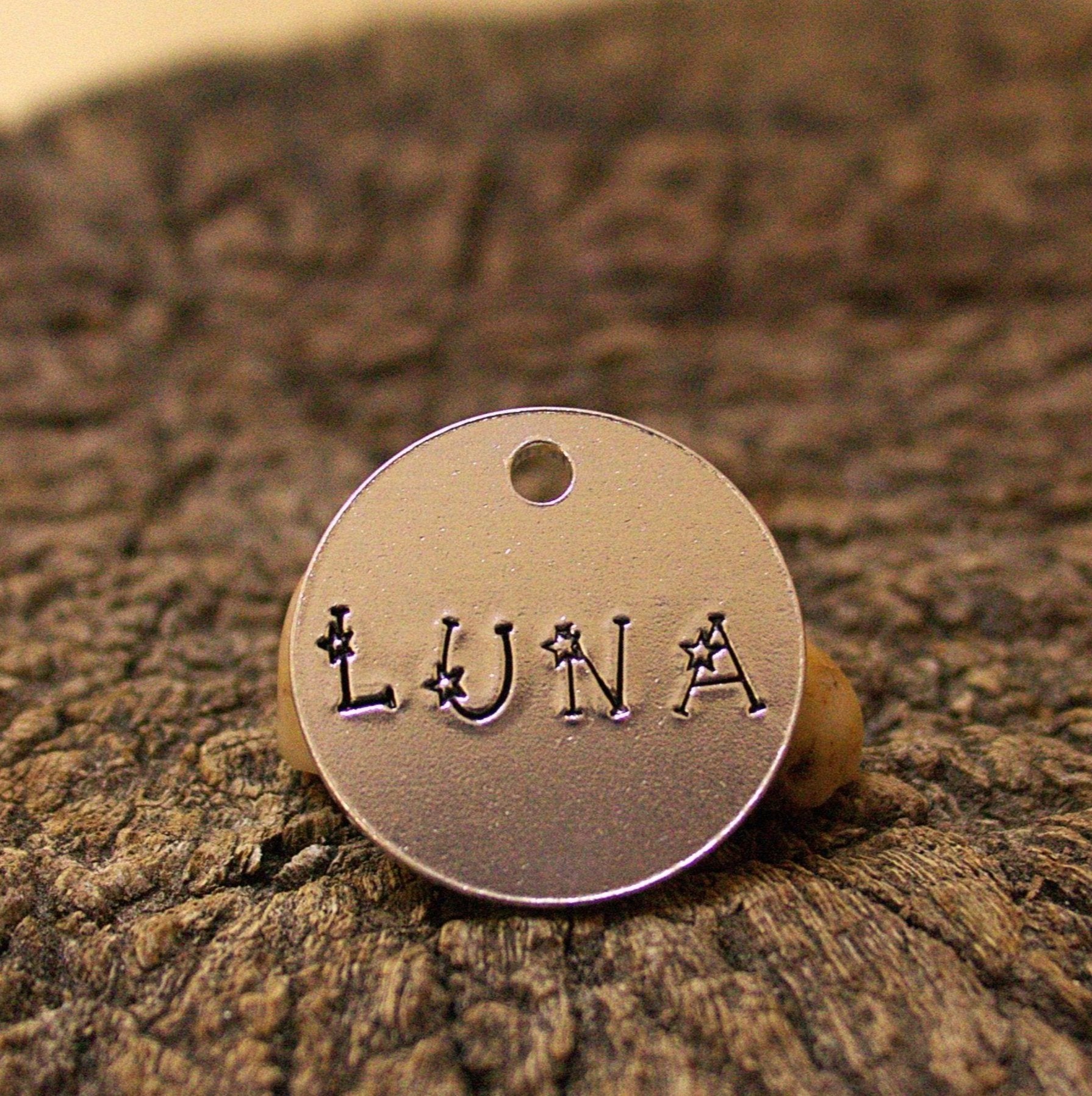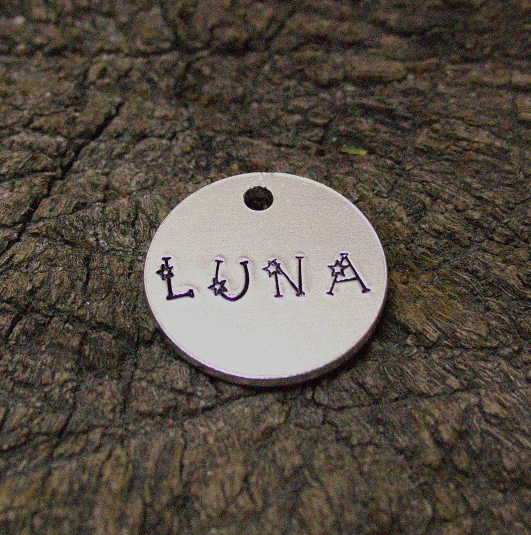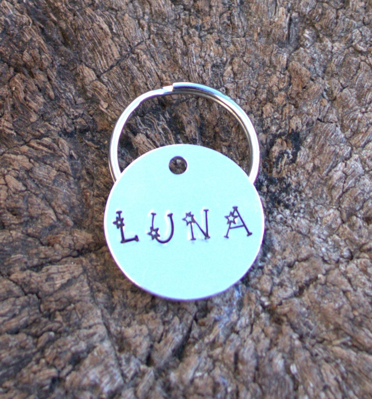 Personalised Pet ID - Hand-Stamped Aluminium Tag with Star Font (2 Size Options)