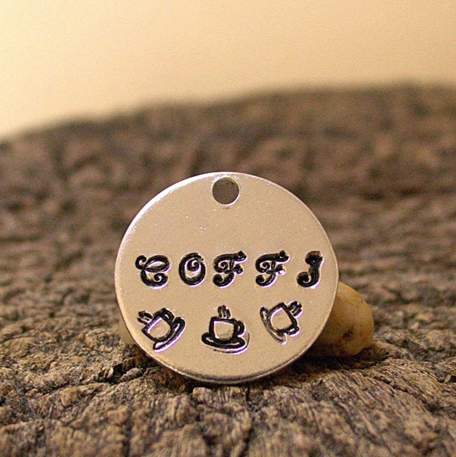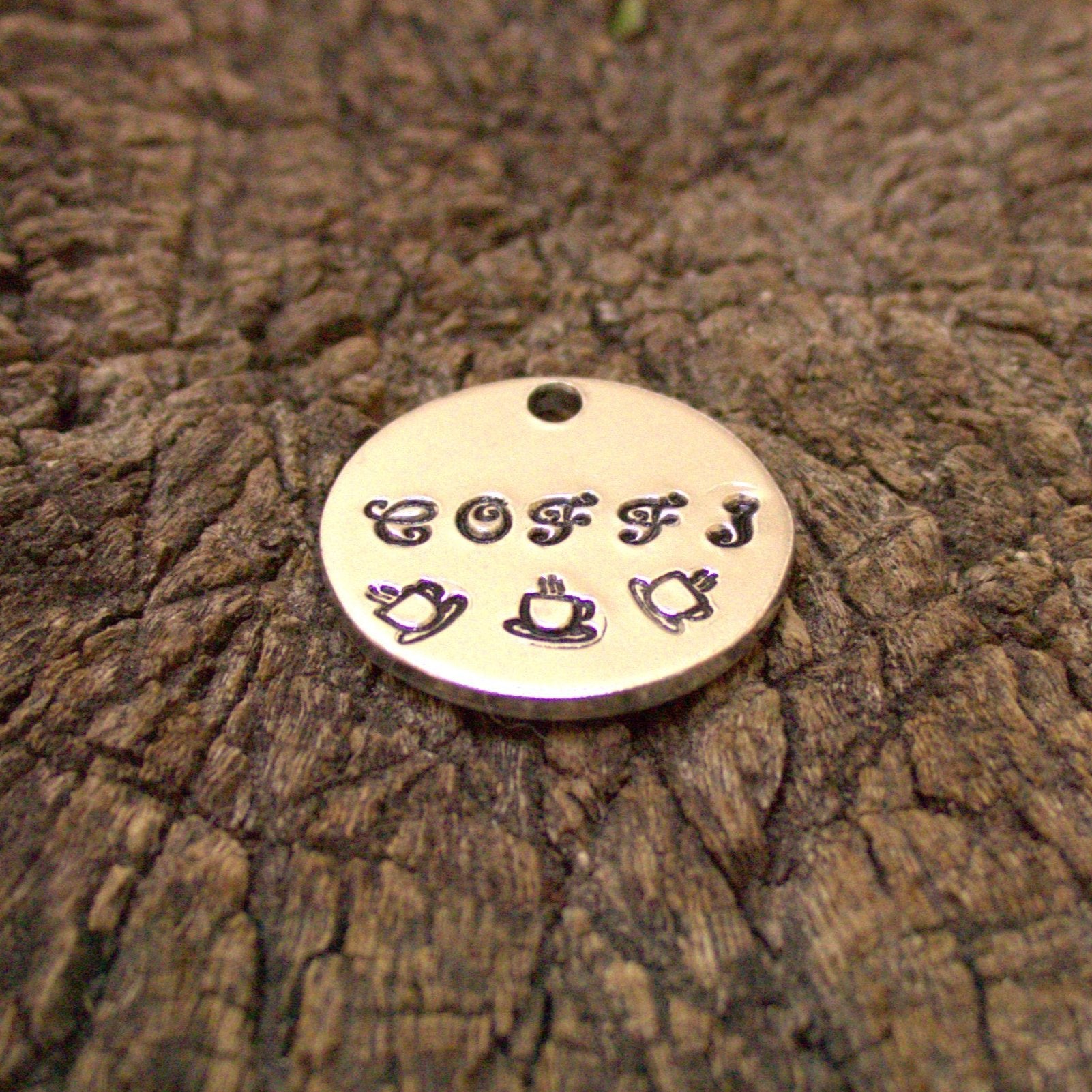 Personalised Pet ID Tag – Hand-Stamped Aluminium Tag with Coffee Design (2 size options)