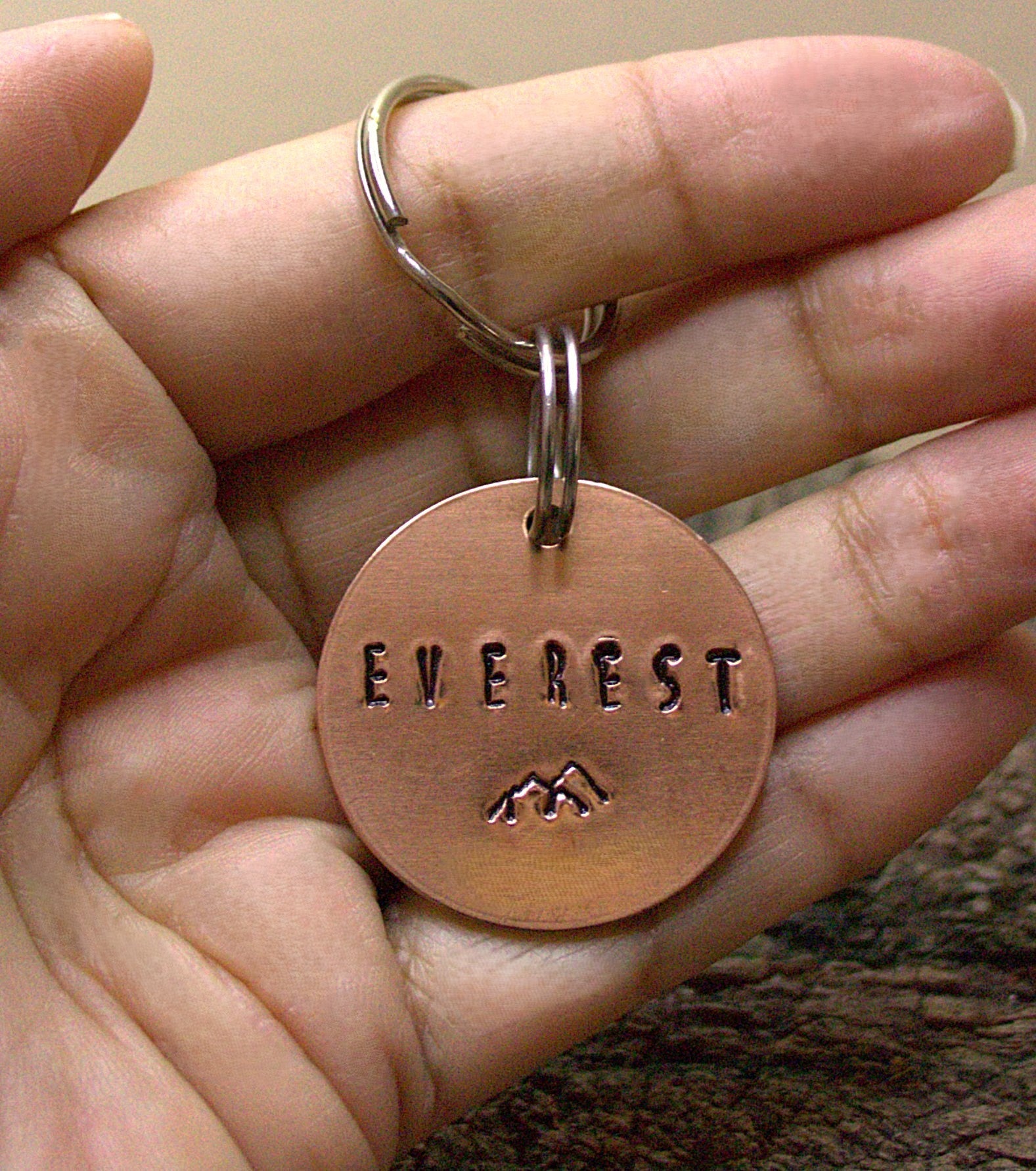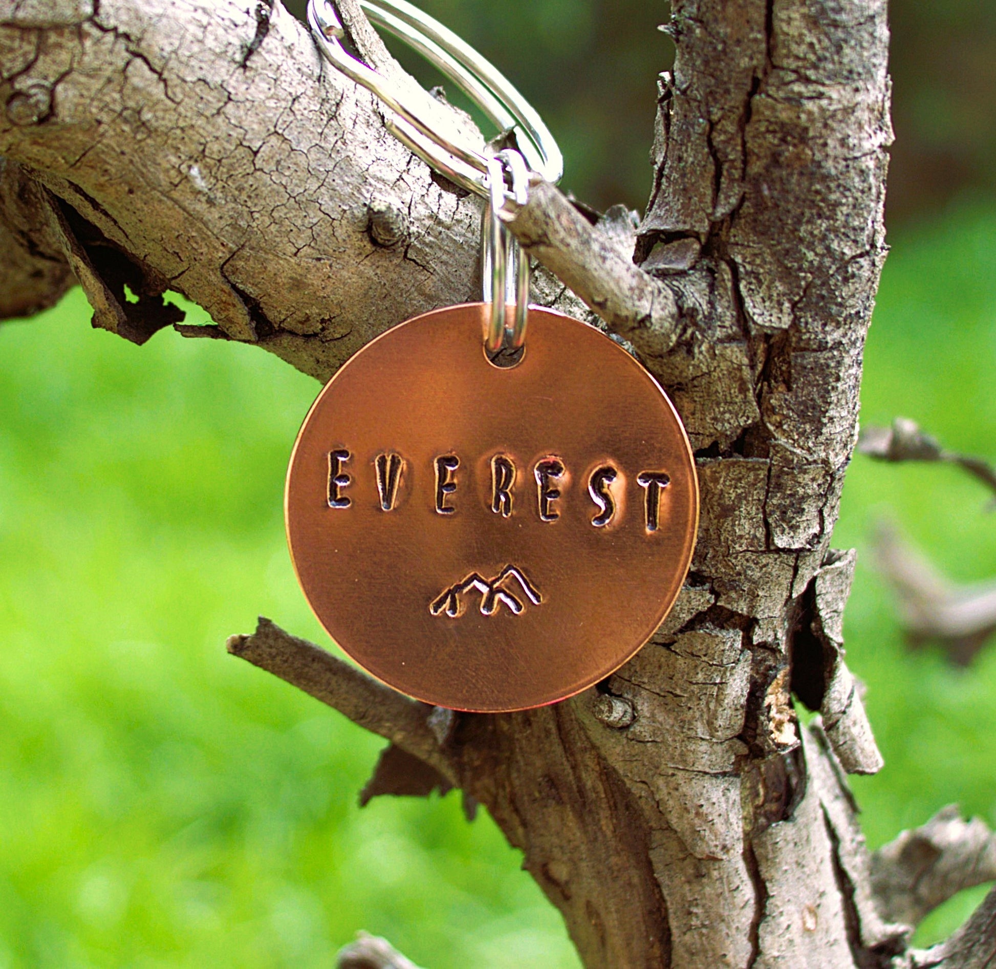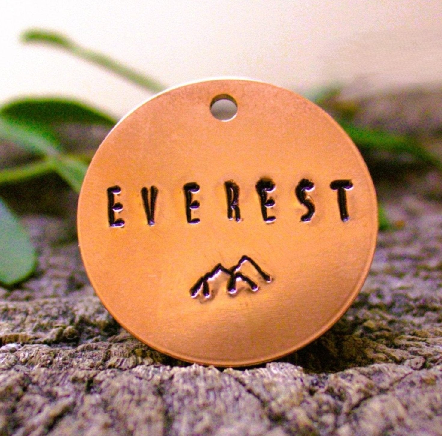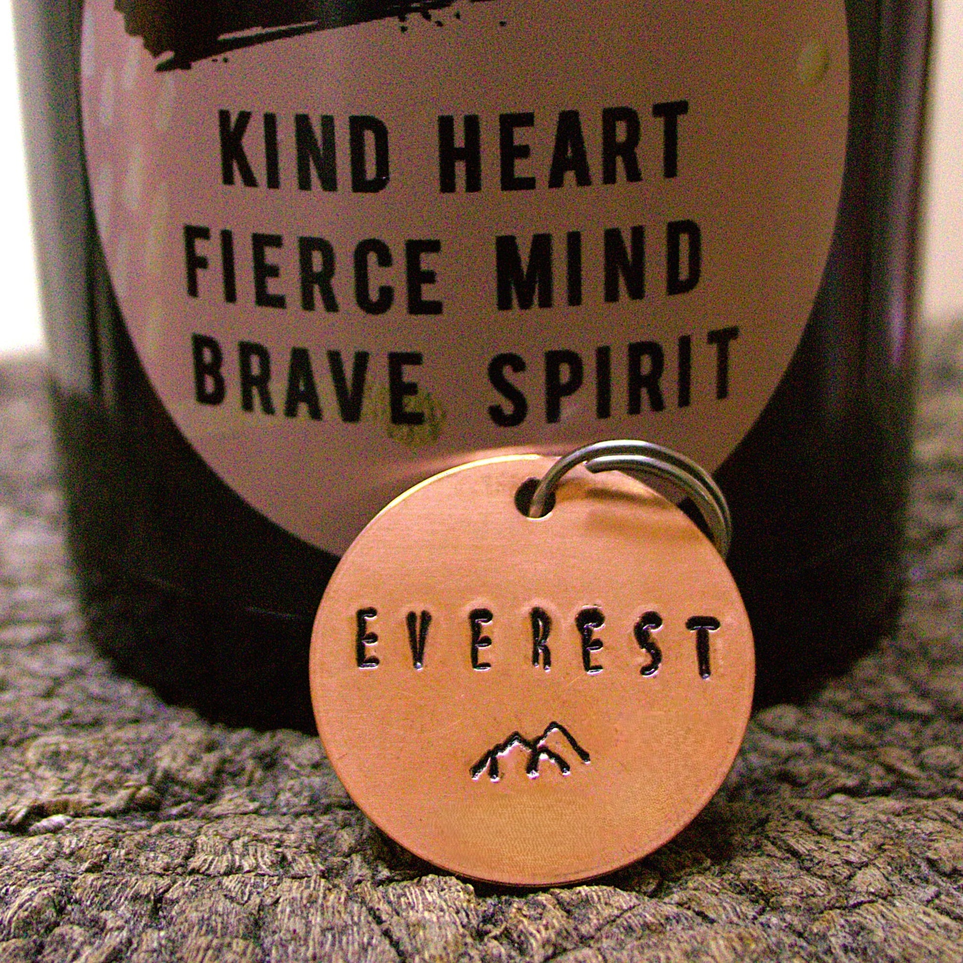 Personalised dog ID tag with charming mountain design stamped on Rose Gold tone Copper or Silver tone Aluminium option. These strong and solid metals provides added safety for easier identification of your pet. Hand-stamped in South Africa, we also offer Free PEP/ PAXI shipping!