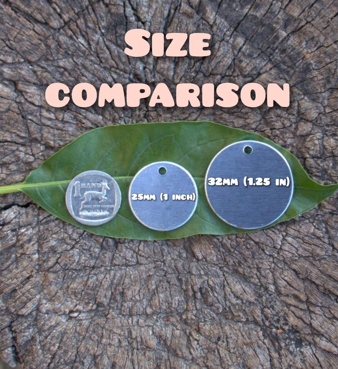 32mm (1.25 inch) – Better for medium to larger pets or longer names